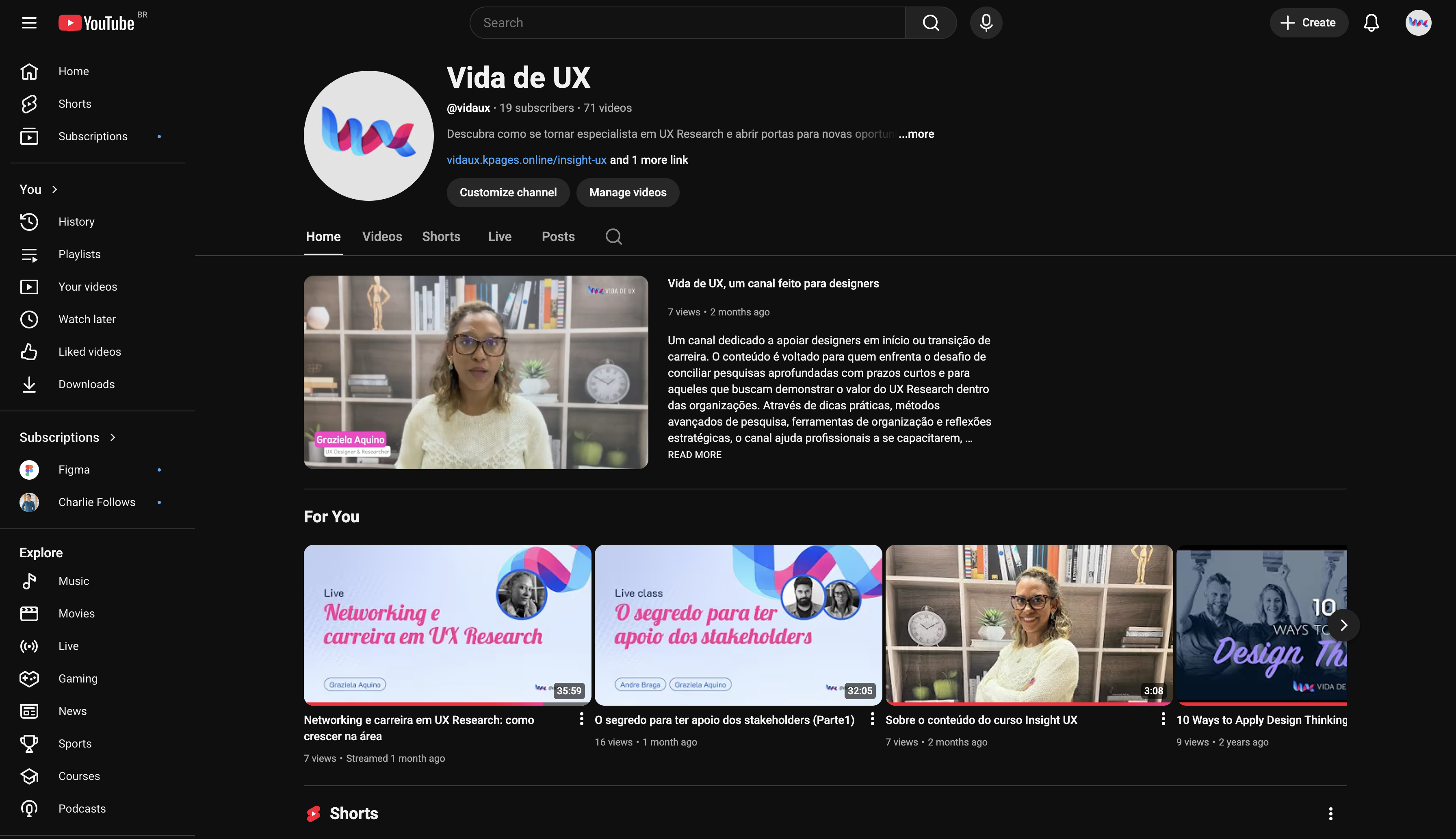 Este canal apoia designers em início ou transição de carreira, oferecendo conteúdo para quem lida com prazos curtos e busca mostrar o valor do UX Research nas empresas. Com dicas práticas, métodos de pesquisa e ferramentas de organização, o canal capacita profissionais a se destacarem e conquistarem reconhecimento. O Vida de UX não só compartilha conhecimento, mas também inspira designers a gerarem impacto real, avançarem para posições de liderança e influenciarem decisões de produto com dados.